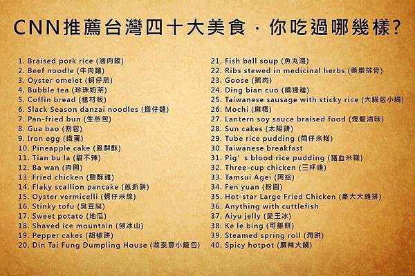 實用生活英語~CNN推薦台灣40大美食,你吃過哪些